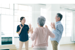 FREE DAMは集団リハビリにおいてとても便利です。利用者様に合わせて体操や音楽が選べるので、みんなでわいわい楽しくリハビリしています。ご当地の映像が豊富なので、ご利用者様に行きたい場所や出身地を伺い、その映像を見せることでコミュニケーションの活性化に役立っています。